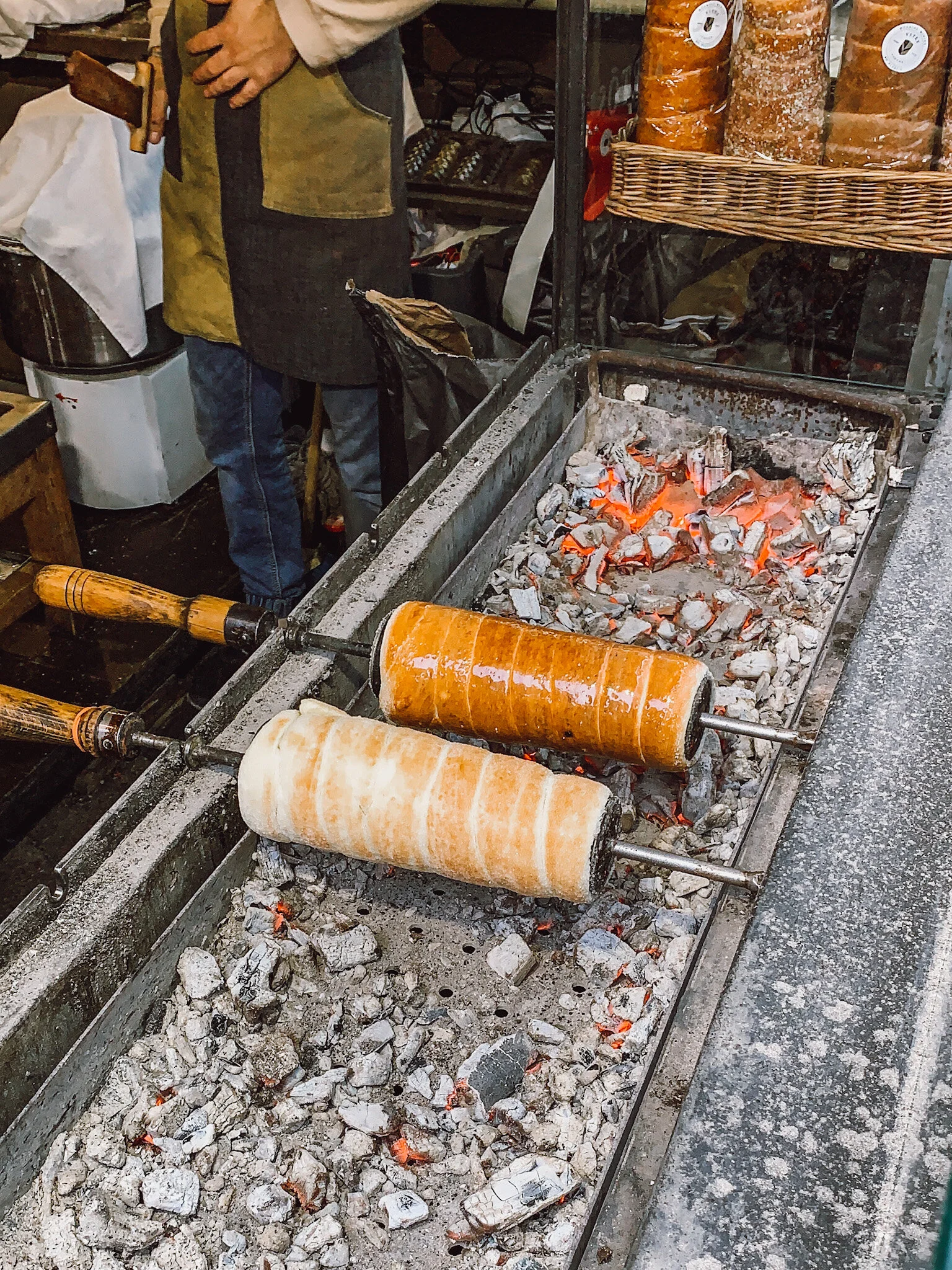 During the evening we headed to all the Christmas markets that were popping up around the city ready for the holidays. Hungary is famous for Chimney cakes. We had first experienced one of these in the Czech Republic a few years ago and were very excited to our hands on some. They are tubes of dough roasted over coals and covered in cinnamon or other toppings of your choosing. They can also be filled with all sorts. We went for the classic cinnamon chimney cake as we think its the best.